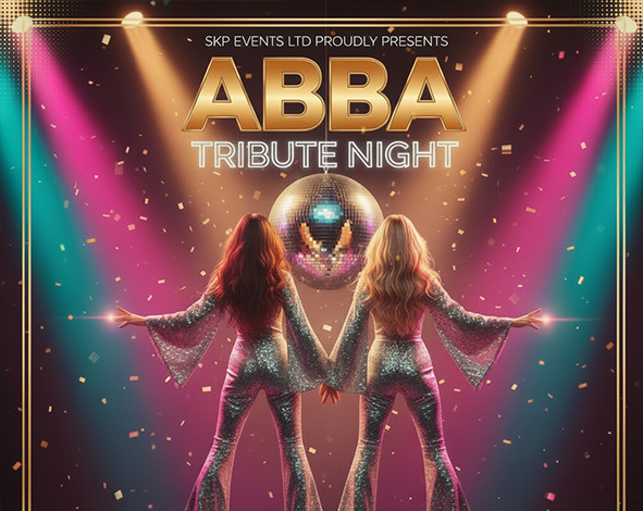 Get ready to say “Thank You for the Music” and dance the night away at our spectacular ABBA Tribute Night! We’re bringing the timeless magic of ABBA to life with an unforgettable live tribute performance packed with all the iconic hits you know and love. From Dancing Queen to Mamma Mia, this is your chance to relive the glitter, the glamour and the pure pop perfection that defined a generation.